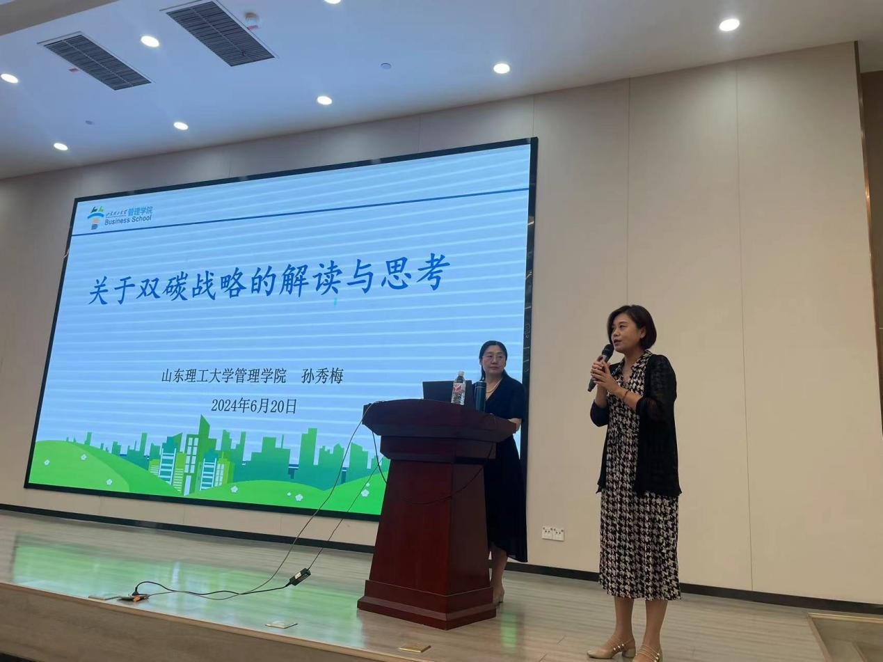 2020年9月22日,国家主席习近平在第七十五届联合国大会一般性辩论上发表重要讲话,首次提出碳达峰碳中和目标。为全面深入地了解国家“双碳”战略,落实学校绿色农业发展创新规划,6月20日下午,我院特邀山东理工大学管理学院院长孙秀梅教授在淄博校区文法西楼学术报告厅作了题为《关于双碳战略的解读与思考务》的学术报告。商学院及其他学院部分师生参加了此次报告会,报告会由商学院院长连华主持。