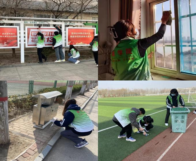 活动中,我院学生分为数个小队,分别在校园内进行志愿服务活动。有的小队负责宣传栏的清理,擦除了蒙尘在宣传栏上面的铁锈、灰尘、胶印等污渍;有的小队帮助医务室老师清理卫生。原本乌涂的玻璃变得明亮,即使双手冻的通红,同学们也仍保持极高的积极性进行志愿服务活动。“小雷锋”们还对校园道路上、花草丛中的废纸杂物进行了清理,帮助校园环境更加干净整洁。大家团结协作,不怕脏、不叫累,积极为美化校园环境,赓续雷锋精神,争做时代新人做出自己的贡献。