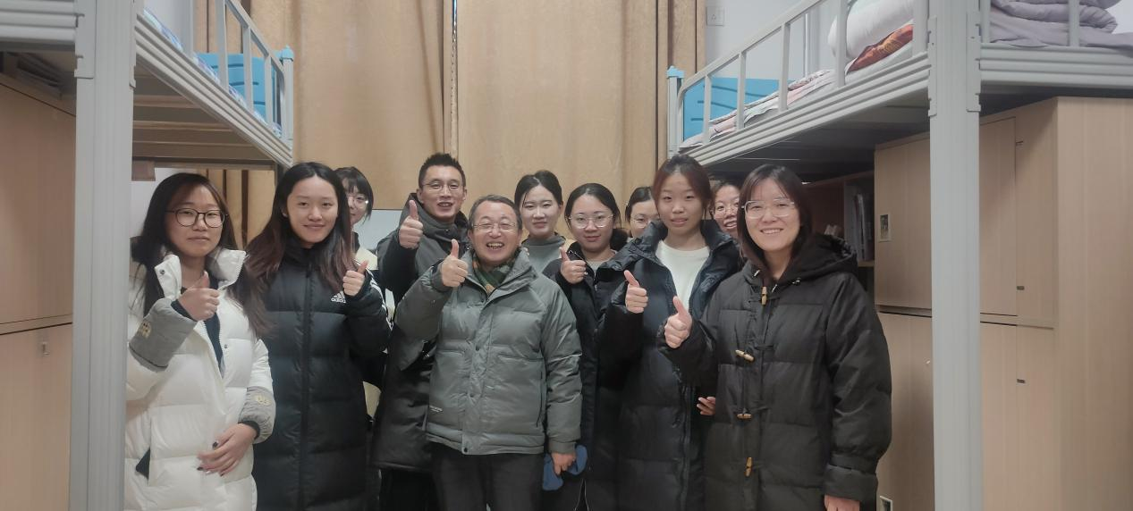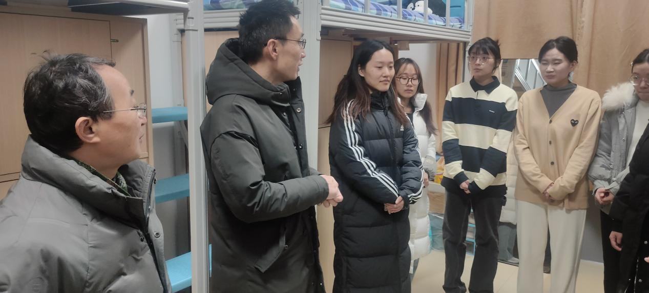 宿舍在走访过程中,学院领导向学生致以亲切的问候,并鼓励他们要坚定信心,调整状态,稳定发挥出最佳水平。刘相礼对学生的考研现状表示关心,深入了解学生的学习和生活状态,并提醒学生要注意身体健康和心理调节,注意保暖御寒,以饱满的状态迎接最后的考试。王世辉为学生送上考前提醒,提醒学生考前相关事项,熟悉考场路线,重视考试纪律和时间管理,并指出学院会为大家提供完善的服务保障工作,嘱咐学生安心考试。同时给学生们加油鼓气,预祝大家取得佳绩,成功上岸。
