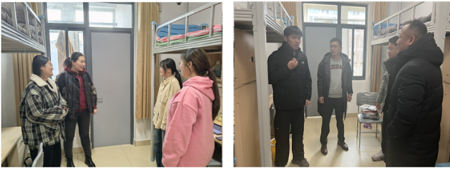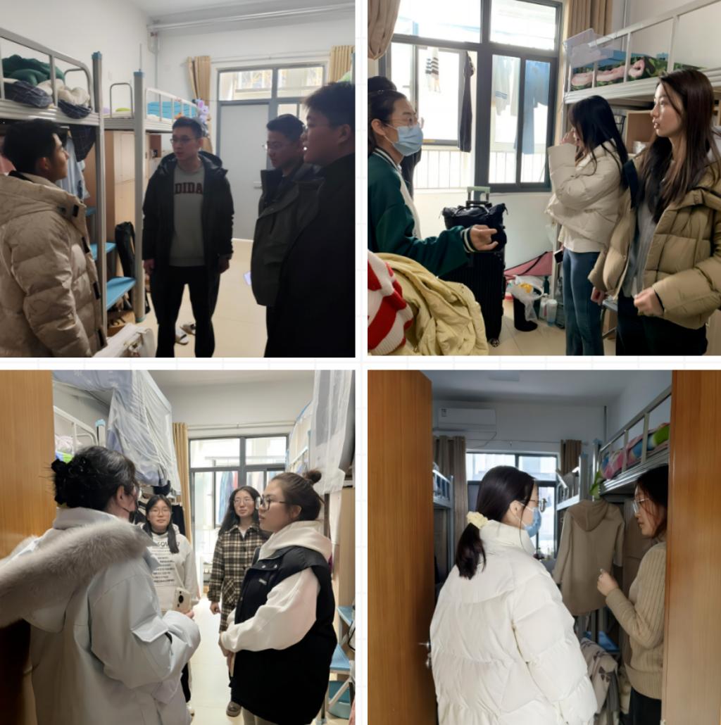 走访过程中,老师们还对各个宿舍的安全卫生情况和宿舍供暖情况进行了仔细检查和查看。同时排查了宿舍中是否存在私拉乱接电线、使用大功率电器、为各类大容量电瓶充电、堆放纸箱饮料瓶等易燃物品等安全隐患问题。提醒同学们增强安全意识,杜绝使用违规电器,防范电信诈骗,积极遵守学校及学生公寓各项管理规章制度。同学们对学院领导和老师的关心表达了感谢,并立志以更加饱满的精神状态和更加充足的干劲投入新学期的学习生活中。