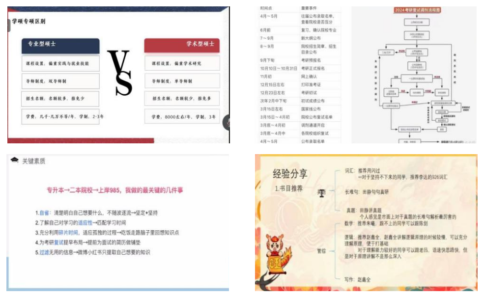 通过本次系列经验分享会活动,不仅内容丰富、形式多样,而且极具针对性和实用性,为同学们的公考考研之路注入了强大的动力,指明了前进的方向。这些分享不仅是考研路上的宝贵财富,也是同学们在求知道路上不断前行的动力源泉。在坚定信念的指引下,他们将更加勇敢地迈向成功的彼岸。