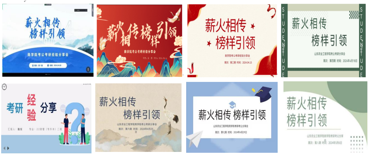 为期一个月的“薪火相传,榜样引领”考公考研经验分享会在热情的氛围中圆满结束。这八期的分享会汇聚了一批批成功上岸的优秀毕业生,他们倾情奉献着宝贵的备考经验,用热烈的朋辈力量,为正在备战考公考研的学弟学妹们点亮前行的灯塔。每一期的分享会都是一场别开生面的经验交流盛宴。在这里,不仅有独到的备考心得和成功经验,还有倾情解答疑惑的互动交流。他们用实例讲解、亲身经历,将抽象的备考技巧具体化,使得参与者能够更加深刻地理解和掌握。