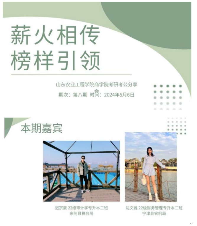 为帮助有考公意向的同学们明确考公的相关政策、掌握考公的相关技巧,商学院于2024年5月6日举办了第八期“薪火相传,榜样引领”考公考研经验分享会。此次分享会特别邀请了2022级财务管理专升本2班的沈文雅学姐和2022级审计学专升本3班的迟宗豪学长,两位学长学姐在公务员考试中均取得了优异成绩,他们倾囊相授,为同学们带来了宝贵的备考经验。