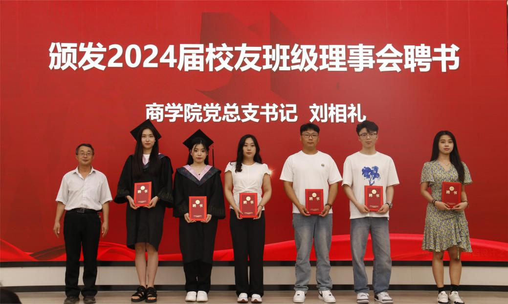 随后,商学院党总支书记刘相礼宣读商学院2024届校友会理事聘任的通知,并向2024届理事颁发聘书。希望校友理事同学们够深刻理解并牢记自己身为理事的职责所在,服务当地校友组织建设,积极参与和服务于当地校友组织的建设,搭建起校友与母校之间的坚实桥梁,及时反馈校友的最新动态和发展需求,共同促进学院校友组织的繁荣与发展为学院校友组织发展贡献力量。