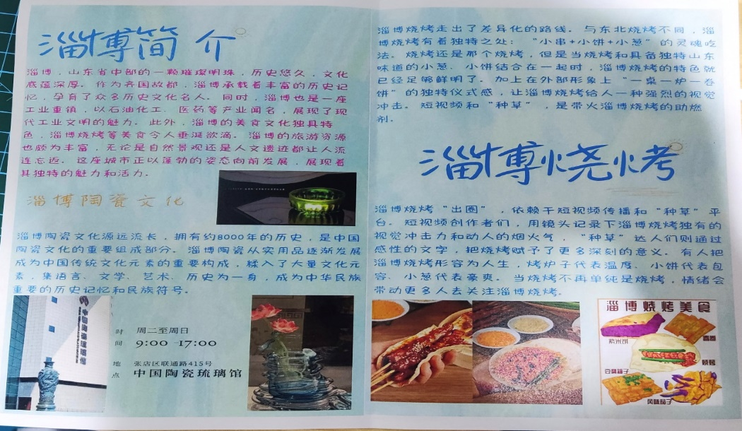 实践过程中,实践队员们充分利用精心设计的宣传单,通过发放宣传单的形式,向游客宣传淄博丰富的文化底蕴和独特的地域特色。队员们还积极与市民及游客交流,市民们热情分享他们对淄博文化的了解和对家乡的热爱与理解。