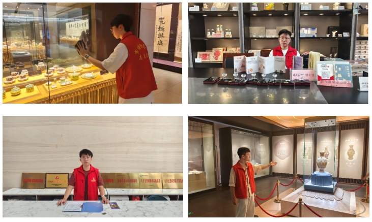 为更直观地感受非遗文化的魅力,团队成员在工作人员的引导下,参与了前台接待、展厅问询与内勤、文创中心服务等志愿服务活动。通过亲身体验,团队成员深刻体会到了传承文化基因、赓续文明血脉的重要性。