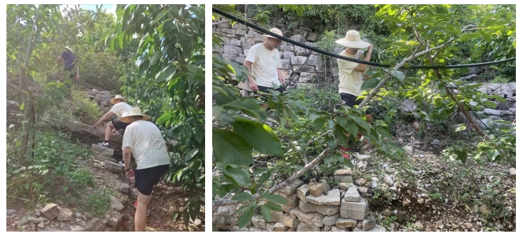 在河西村的调研中,条件则更为艰苦。队员们身穿统一服装,头戴遮阳帽,在烈日下上山,在偏僻密林和羊肠小道中穿梭。除了蜿蜒崎岖的山路、飞虫叮咬和30多度的高温,队员们还感受到了一种豁达的精神。乡村振兴最真实的声音,来自于村民的心声。队员们始终保持坚定信念,聆听村民的声音,坚持不懈,最终圆满完成了沂源县外业调查的所有任务。