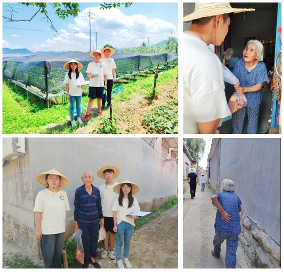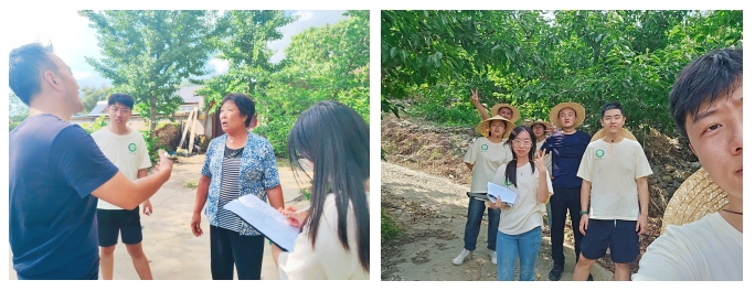 张家泉村和北王家庄村主要种植苹果,对苹果种植的收入和成本情况的调查成为此次调研的重点。在这两个村庄,队员们不仅收获了有关苹果种植收益情况和遇到的困境的调研资料,还深刻感受到了村民们的淳朴热情。一位年迈的老奶奶迈着步伐为队员们带路,一位刚抓鱼回家的爷爷积极参与调查问卷的填写,并与队员们分享了子女在济南电视台工作的喜讯,言语中充满了对子女成就的骄傲和对家乡未来发展的美好憧憬。最后,队员们向他们赠送了“金黄金”桃,感谢他们的帮助和支持。