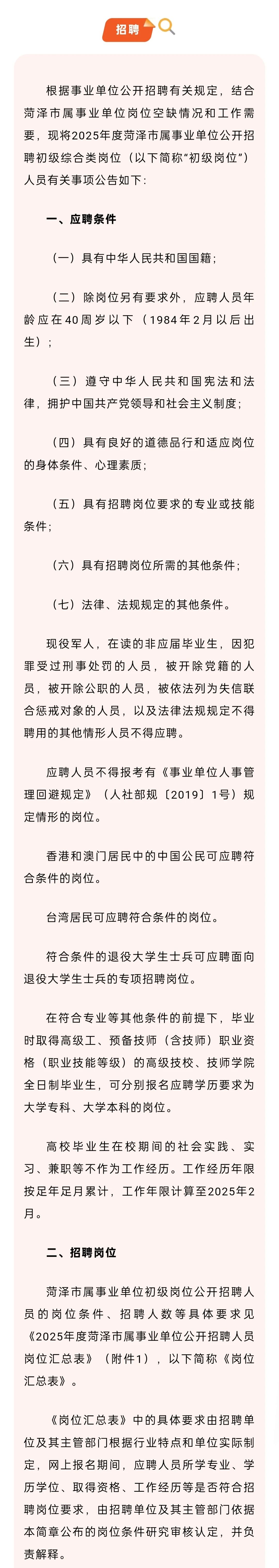 就业职通车|商学院2025届毕业生“寒假促就业暖心行动”菏泽市属事业单位招聘简章