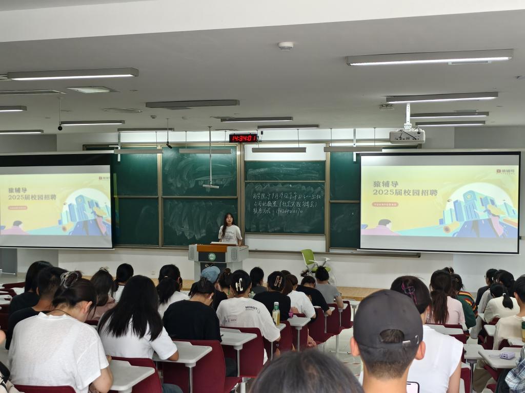作为国内领先的在线教育品牌,猿辅导线上学科培训学校提供了包括班主任、辅导老师在内的多个就业岗位。招聘会上,猿辅导负责招聘的老师详细介绍了公司的基本情况、发展前景以及各招聘岗位的具体要求,让同学们对教育培训行业和猿辅导有了更深入的了解。