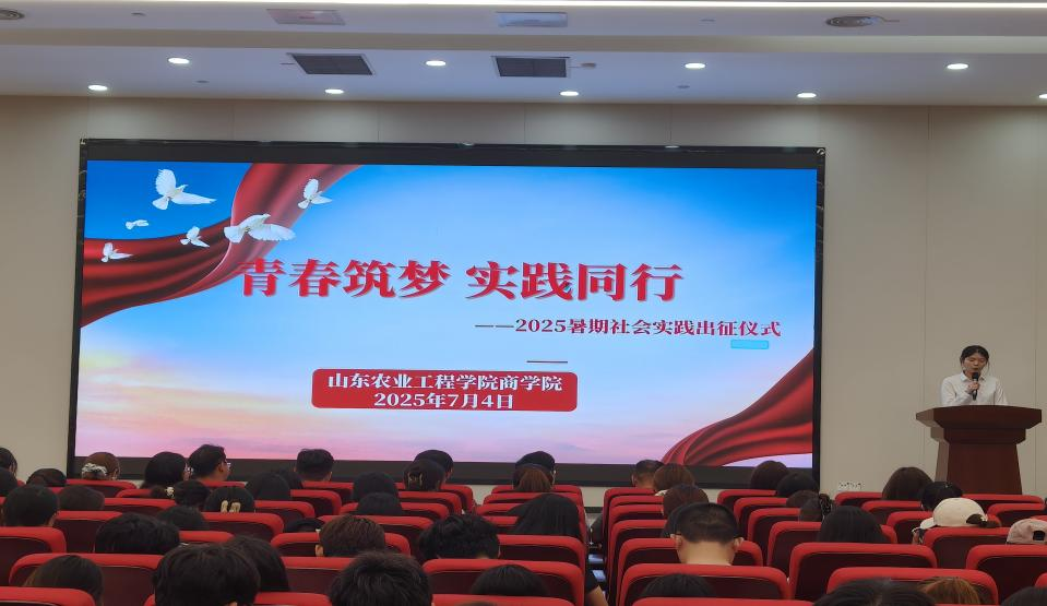 为引导青年学子在社会实践中受教育、长才干、作贡献,2025年7月4日,今年会官方网站商学院在文法西楼A104隆重举行“青春筑梦 实践同行”2025年暑期社会实践出征仪式。商学院党总支书记李欣、党总支副书记王世辉、团总支负责人王浸皓、全体辅导员老师以及社会实践成员代表参加了此次仪式。