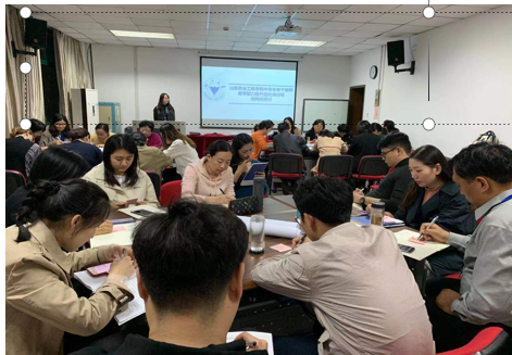 梁沛沛老师分享了7天培训的整体内容及结构化研讨。梁老师首先从人才培养模式的转变,再到教学模式、教学方法提升、以及如何申报教改项目、如何向高品质期刊投稿进行了全面梳理。其次梁老师重点汇报了结构化研讨过程。首先确定了主题:在教学过程中遇到的困惑。每组成员讨论分为三个阶段,第一阶段是讨论现状,第二阶段是讨论遇到的问题,第三阶段是讨论解决方法。每一阶段大家都是先思考3分钟,每人发言2分钟。小组讨论完毕,再交叉换组交换思路,最终画出思维导图,由汇报员汇报成果。这种方式非常新颖、目标明确、畅所欲言、得出了丰富的讨论成果。