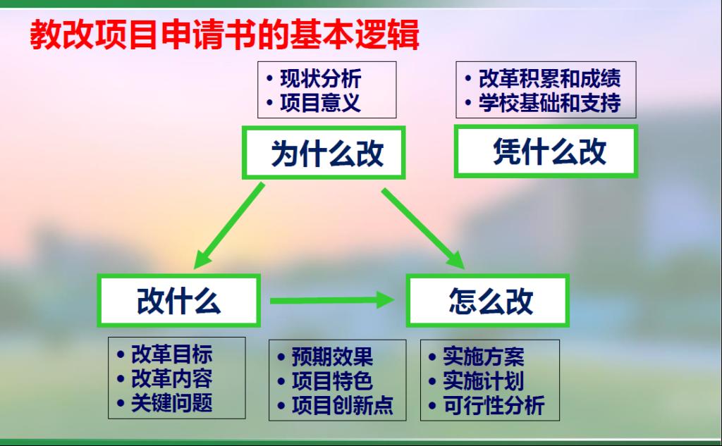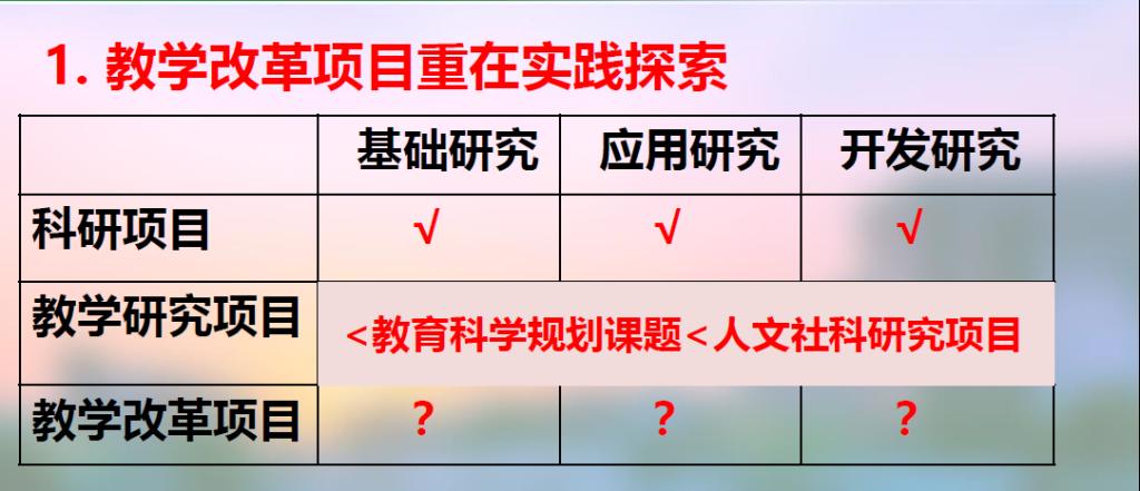 陈爱伟老师分享的是教研和科研之间的关系和区别。陈老师首先从目的和成果两个角度重点解释了教研项目和教改项目之间的联系。其中,教研项目的目的是认识问题,而教改项目的目的是付诸实践,解决问题;教研项目的成果表现一般是以论文的形式呈现,而教改项目的成果表现更多地是带来教学结果的改变。因此,教学改革项目重在实践探索,要在应用大学教学规律上有所创新,即“先进教育理念应用+教学实践改革”,其实施要以专业、课程、实验室、教学基层组织等为单位进行试点,课堂教改项目的实施以课程为基础试点。实践性、创新性和适切性是教改项目的三大基本特征。陈老师建议从如何精心备课、做教学设计出发,从教学中发现教学改革的点,进而付诸于实践,开展教学改革,进而沿用科研的逻辑思维,即“为什么改—改什么—怎么改—凭什么改”,阐述教改项目申请书撰写的基本思路和具体方法,最后一起分享了浙江大学汤教授的教改项目申请书,为今后青年教师撰写申请书提供些许宝贵经验。
