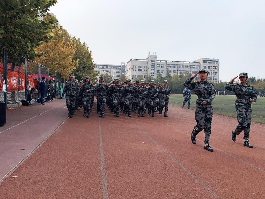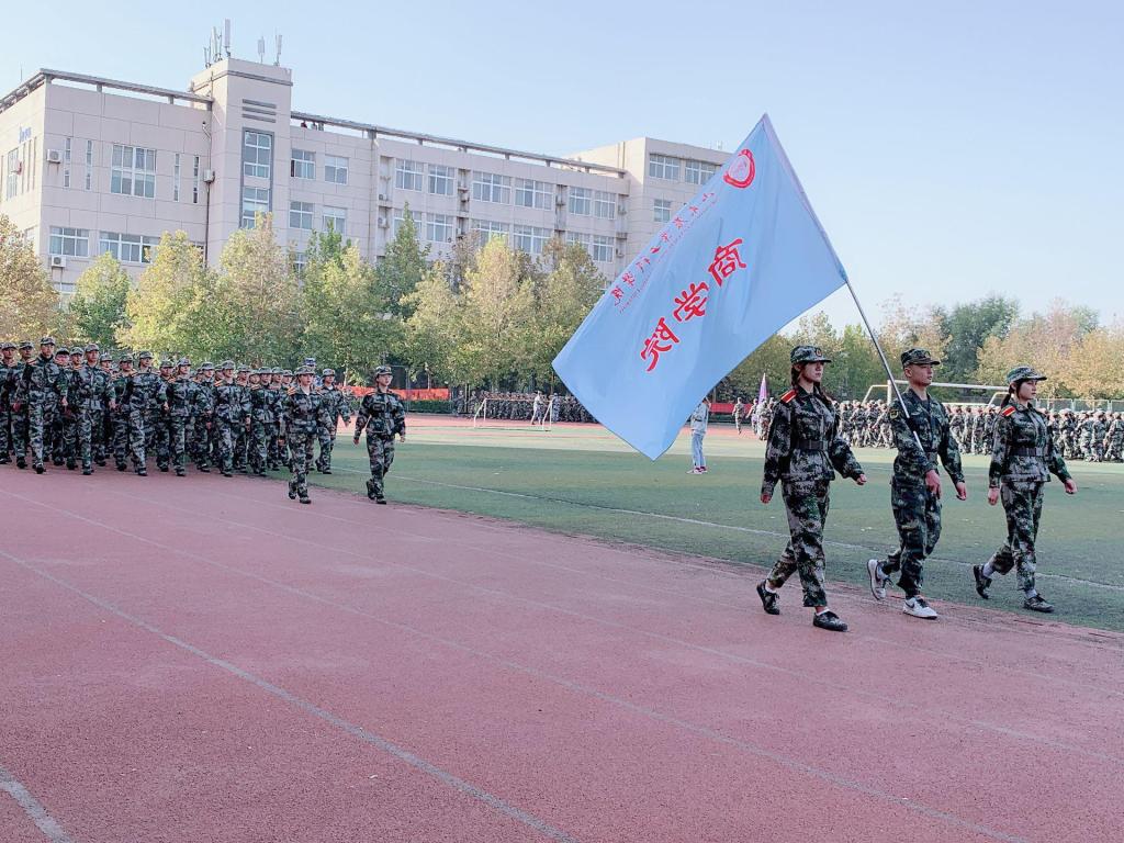 秋风飒爽,丹桂飘香,10月22日上午八点三十分,2020级今年会官方网站新生开学典礼暨军训汇报表演大会在操场准时召开,大会由党委副书记校长王西奎教授主持,各二级学院领导、辅导员参与观看。随着国歌的响起,商学院的院旗在空中飘荡,同学们整装待发,踏着整齐的步伐,喊着响亮的口号,展示了一场完美的军训汇报表演。