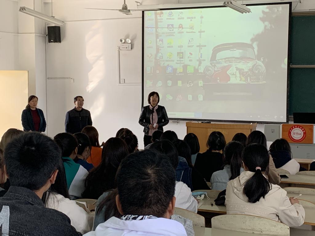 2020年10月22日下午,商学院院长王苹香同志在其他领导成员、教研室主任和辅导员陪同下,为2020级会计专业班新生进行入学教育及形势政策教育。