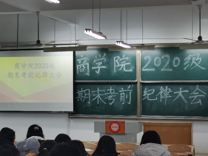 期末将至,为保证商学院2020级全体学子有序、公平地度过期末考试周,2021年1月5日,商学院2020级全体同学分专业在济北校区北二教6楼多媒体教室进行了商学院20级期末考前纪律大会。