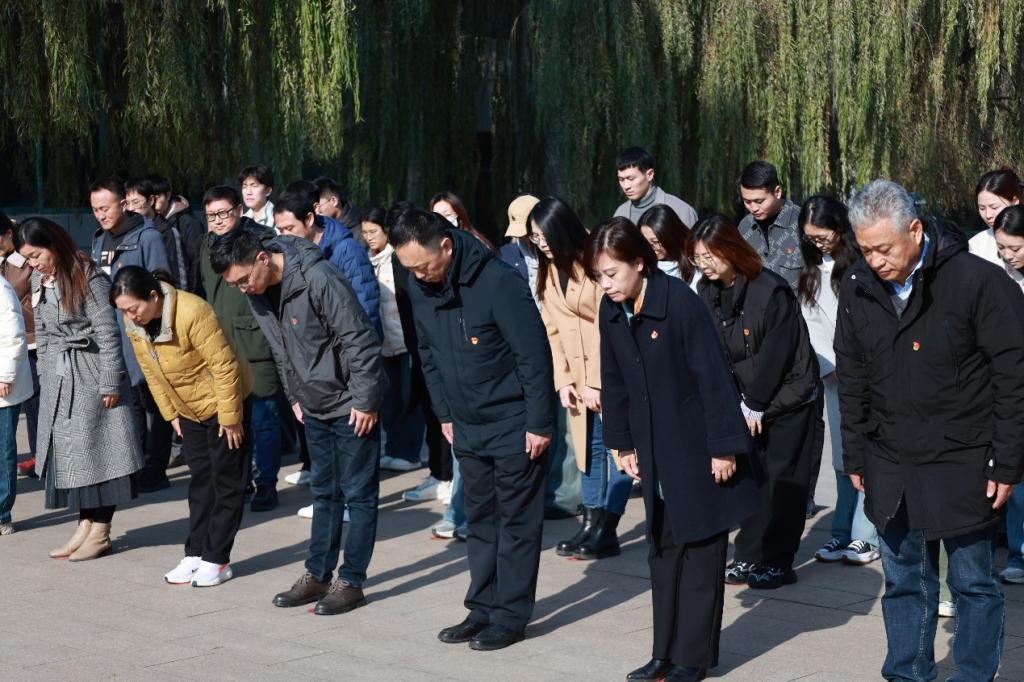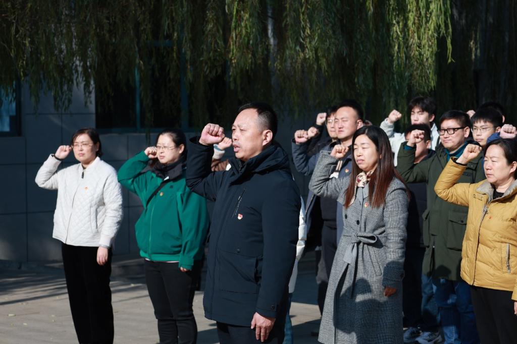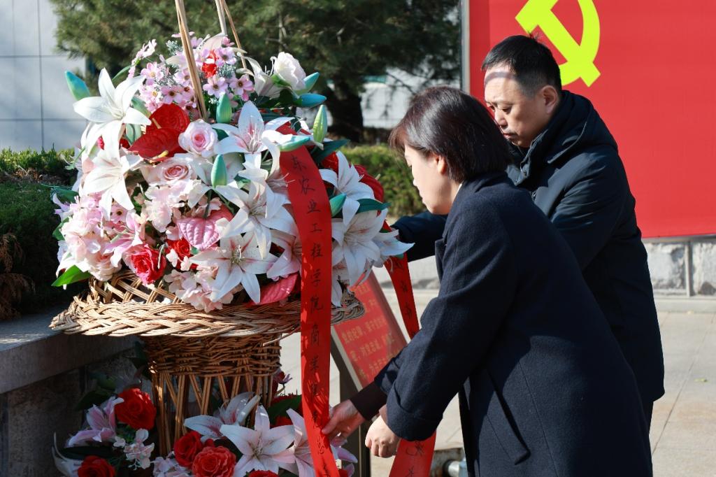 在参观结束后,全体党员师生在焦裕禄纪念馆前广场整齐列队,李欣和连华代表全体党员师生敬献花篮,表达对焦裕禄同志的深切缅怀和崇高敬意。随后,在李欣的带领下,全体党员师生重温入党誓词。“我志愿加入中国共产党,拥护党的纲领,遵守党的章程……”铿锵有力的誓言在广场上回荡,彰显了党员师生们对党的忠诚和对人民的热爱。
