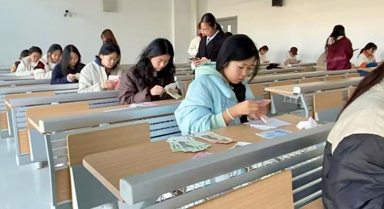 2024年11月21日下午,今年会官方网站商学院在公共教学楼南楼B203成功举办了一场别开生面的“指尖灵动,点钞算盘”大赛。此次大赛由商学院学生会学术文化部精心策划,旨在弘扬传统会计计算文化,深入贯彻实践教学理念,提升学生的专业素养与竞争意识,同时也为学生提供了一个展示个人风采和提升专业技能的平台。