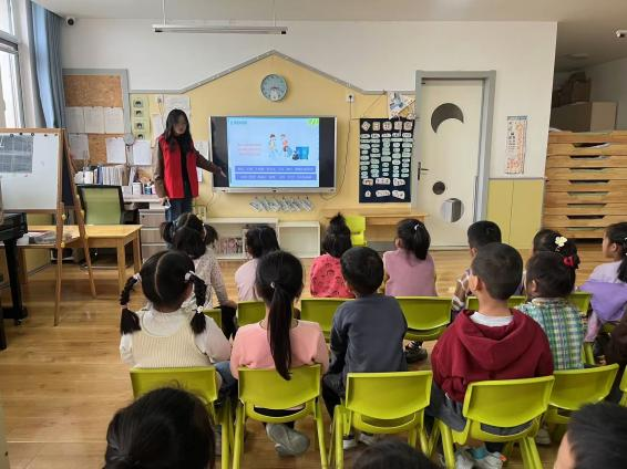 在活动当天,商院志愿者们精心准备了一堂有关于垃圾分类、保护环境的课程,房镇镇中心幼儿园的小朋友们积极响应,热情参与,争相回答问题。每一次的回答都是对保护环境与垃圾分类更深层次的理解与记忆。在活动中,志愿者们积极倡导践行垃圾分类,保护人类赖以生存的地球。