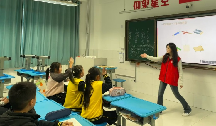 商院学子与教师充分交流,依据教学大纲与学生实际,精心设计课程,针对性制作生动有趣的课件。通过图片与简单词汇的结合,开启孩子们英语之门。商院学子采用多元化教学方式,比如“游戏化学习”,进行英语抢答,你画我猜等小游戏。孩子们踊跃竞答,积极参加,极大调动孩子们学习英语的热情,课堂上充满欢声笑语。