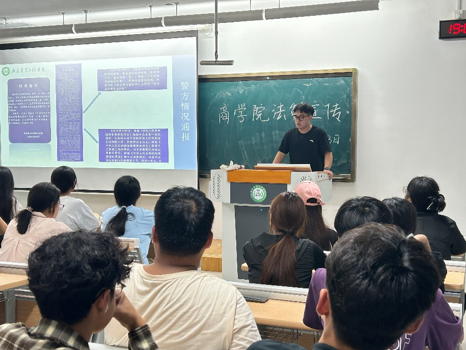 为深入学习贯彻习近平法治思想,认真落实教育系统“八五”普法规划,增强我院学生法治观念和法律素养,强化自觉守法意识,增强自我保护能力。9月13日,商学院法制宣传员张浩伟为24级新生开展法治宣传教育。