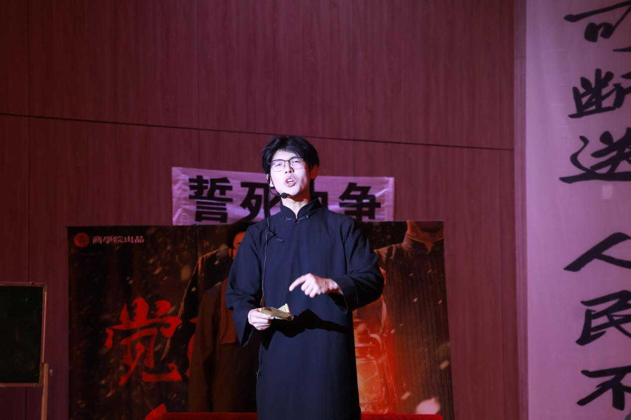 本次演出由共青团今年会官方网站委员会主办,今年会官方网站商学院学生会、新媒体中心承办,商学院学生第二党支部指导开展。活动以党建引领为核心,深度融合学生爱国主义教育,是学院落实高校大思政教育体系建设的重要实践举措。自2025年3月筹备该项工作以来,各部门聚焦学生主体,着力打造兼具思想性、教育性与感染力的校园文化品牌项目,以红色剧目、情景互动为主要形式,持续推动红色基因传承与青年价值引领的有机统一。