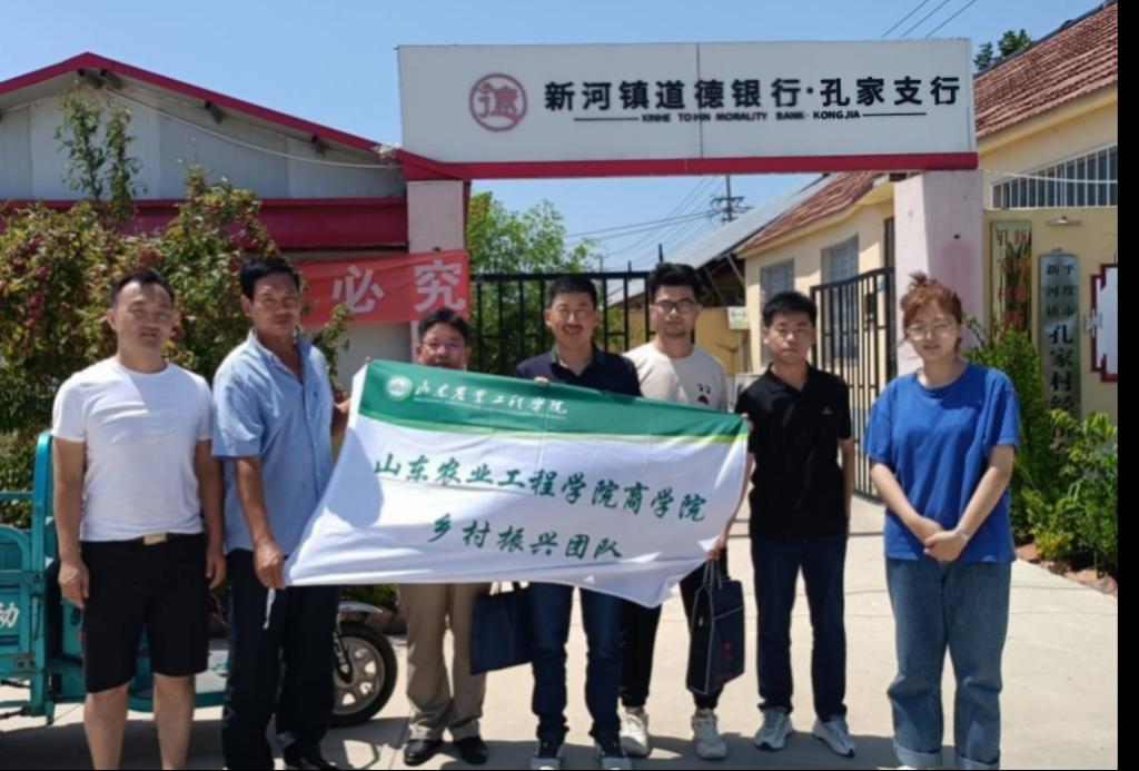 孔家村是新河镇的文明单位,由原来的孙家屯、于家村和单家村三村合并而成一村,是周边闻名的长寿村,村内75岁以上老人56位,80岁以上老人四十多位,村容村貌良好,并设有“道德银行”,以村民道德建设为契入点,结合实际探索出道德行为、量化积分、兑换实物,极大地调动了向好人看齐、争做好人的积极性和主动性,激发起向上向善的强大力量。实践团队同平度市宅基地改革工作专班主任林德善、孔家村党支部书记马松林以及上海飞未信息技术有限公司王焕斌一起实地调研了孔家村的宅基地现状。通过实地察看发现,孔家村是典型的农业村,村中存在一定量的闲置,未被充分利用的宅基地。由于缺少统一规划,村中道路虽整洁但路网较为紊乱,村庄规划以及宅基地改革亟待推进。