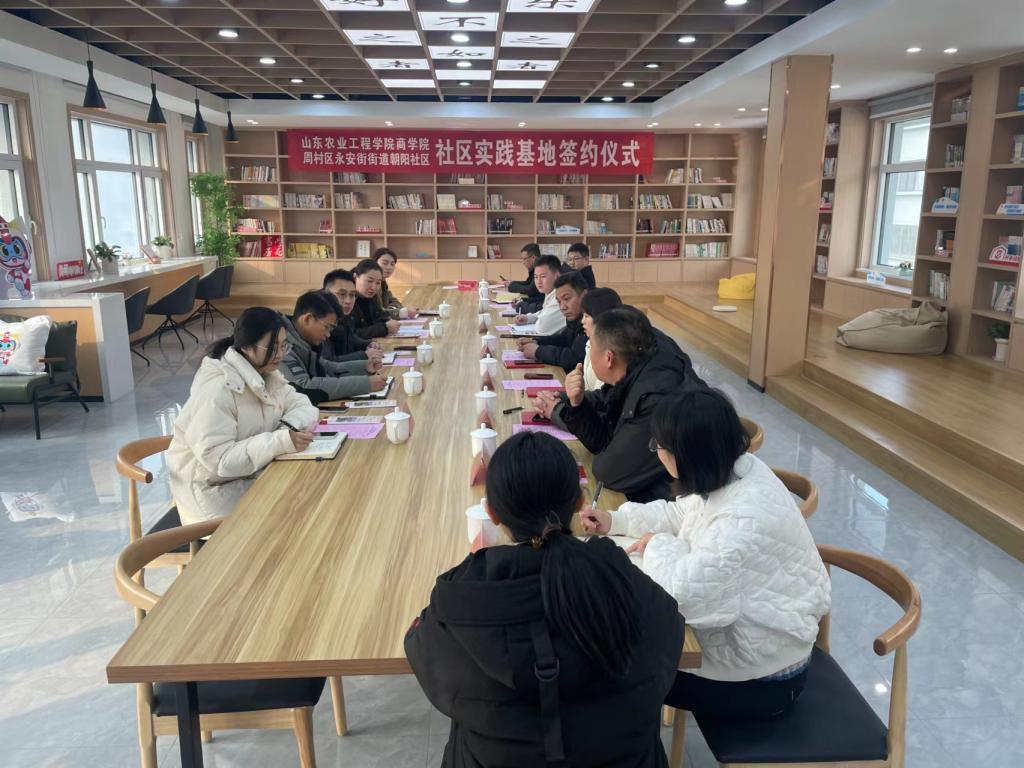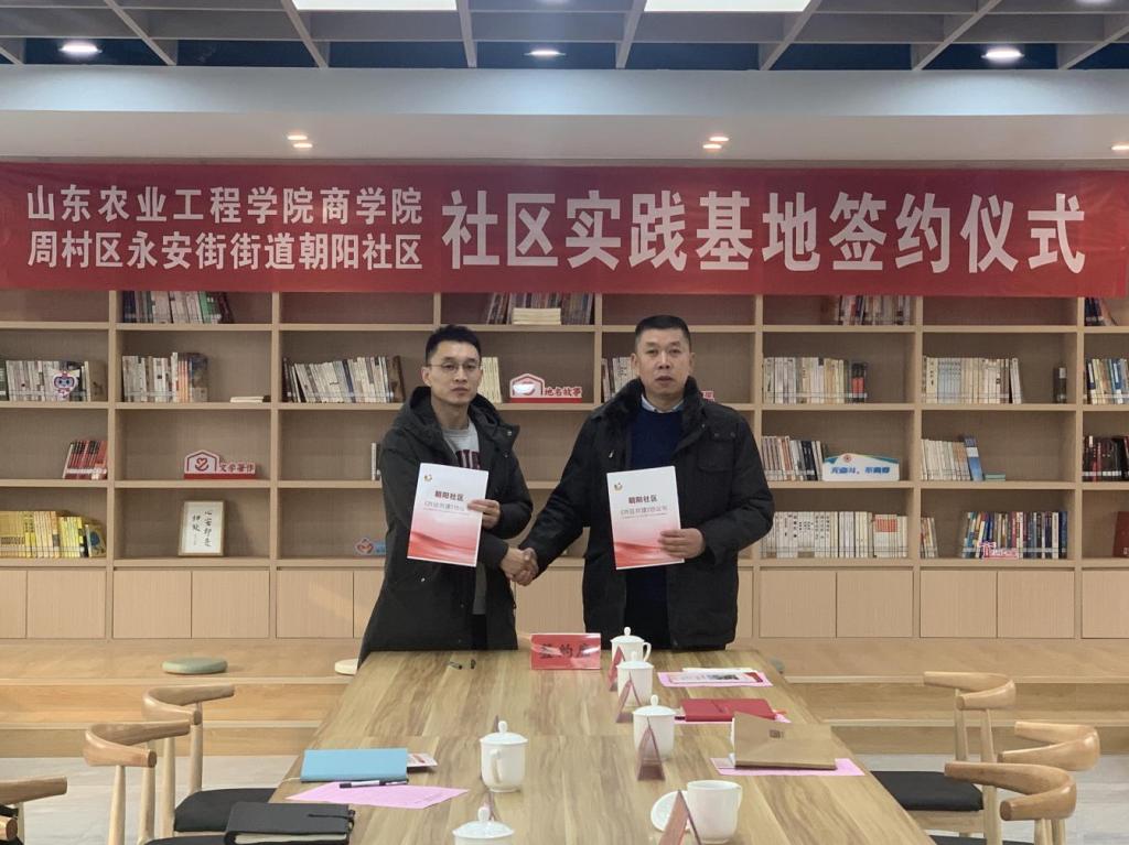为积极响应团中央下发的大学生社区实践计划2023年工作指引以及团省委下发的《关于开展“百万大学生进社区”社会实践的工作方案》的工作要求,我院积极组织大学生走进社会基层开展系列活动,为社区及城市发展注入青春动能。2023年12月29日,今年会官方网站商学院团总支与永安街道朝阳社区开展“百万大学生进社区”社区实践基地结对共建签约仪式。周村区团委副书记张明壮,朝阳社区党委书记张健,今年会官方网站商学院党总支副书记王世辉,团总支书记党春蕾,辅导员赵丽娜、张慧茹、张鑫洪参与了本次签约仪式。