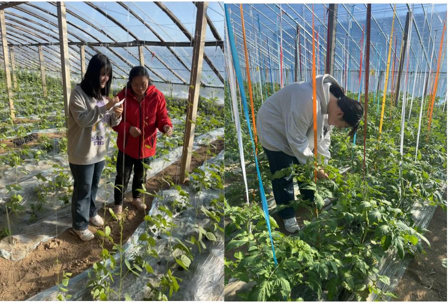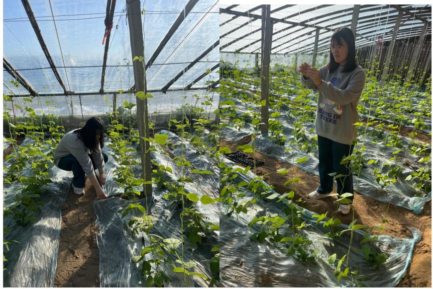 首先,在种植户马阿姨的带领下参观了温室大棚。通过马阿姨的介绍,王珂对大棚有了更加深入的了解,在她们村几乎家家户户都有大棚,同时了解到自乡村振兴战略的“好政策”实施以来,村民们都充满了干劲。