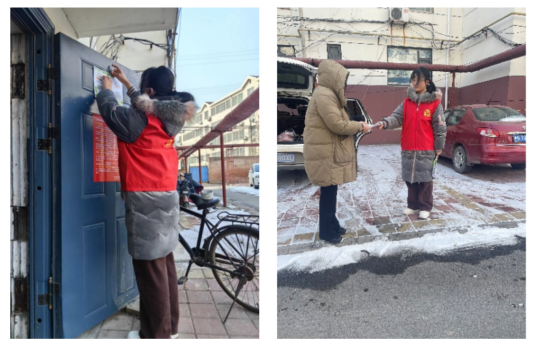 在本次社会实践中,王雨菲与其他志愿者进入小区,在每单元显眼位置张贴通知,并认真给社区居民讲解通知内容,用自己的绵薄之力提升人民的安全防范意识,减少危险的发生。很多事情只有自己经历了才能有所体会,即使天气寒冷,但随着工作的进行,也会觉得热血澎湃,因为只有真正服务在前沿,才能深切体会到社区人员的不易,同时内心也会增加对工作人员的敬佩,正是因为他们的付出,我们的社会才会更加美好。