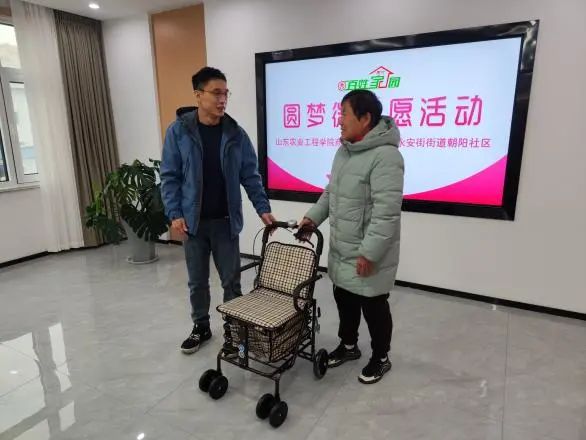 为积极响应团中央下发的《大学生社区实践计划工作指引》以及团委下发的《关于开展“百万大学生进社区”社会实践的工作方案》的工作要求,弘扬“奉献、友爱、互助、进步”的志愿精神,切实提升共青团实践育人质量,今年会团委积极推动学生投身社区实践,鼓励学生在社会实践中学真知、增实干、做贡献,在服务社会中绽放青春理想。3月25日下午,商学院领导老师前往周村区永安街街道朝阳社区开展“圆梦微心愿”活动,我院师生主动认领,助力5位居民“微心愿”实现。