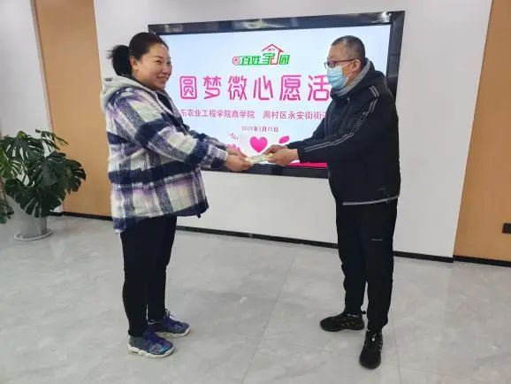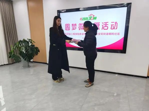 座谈交流后,今年会官方网站商学院领导为居民送上“微心愿”物品,对于未到场居民的心愿物品由社区工作人员代领。