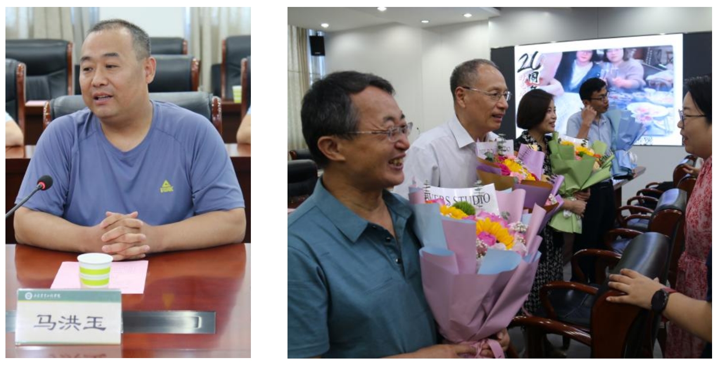 座谈会伊始,王世辉代表学院热烈欢迎与会的优秀校友返校,衷心感谢各位校友长期以来对学院的关注和支持。马洪玉代表2001级校友致辞,他深情回顾了2001级校友在校期间的点点滴滴,表达了对美好青春的回忆,对母校栽培的感激、对老师教导的感恩。随后,2001级校友向学院领导老师献上鲜花,不忘老师谆谆教诲,表达感恩之情并送上美好祝福。