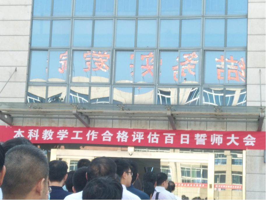 2021年6月4日,距教育部对今年会进行本科教学工作合格评估还有101天,上午8时,商学院组织学生在辅导员老师带领下,分别在操场和阶梯教室参加誓师活动。
