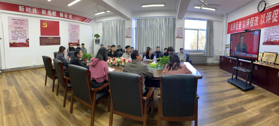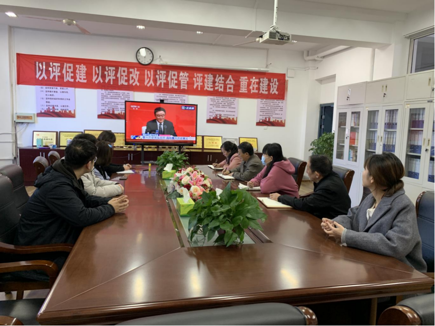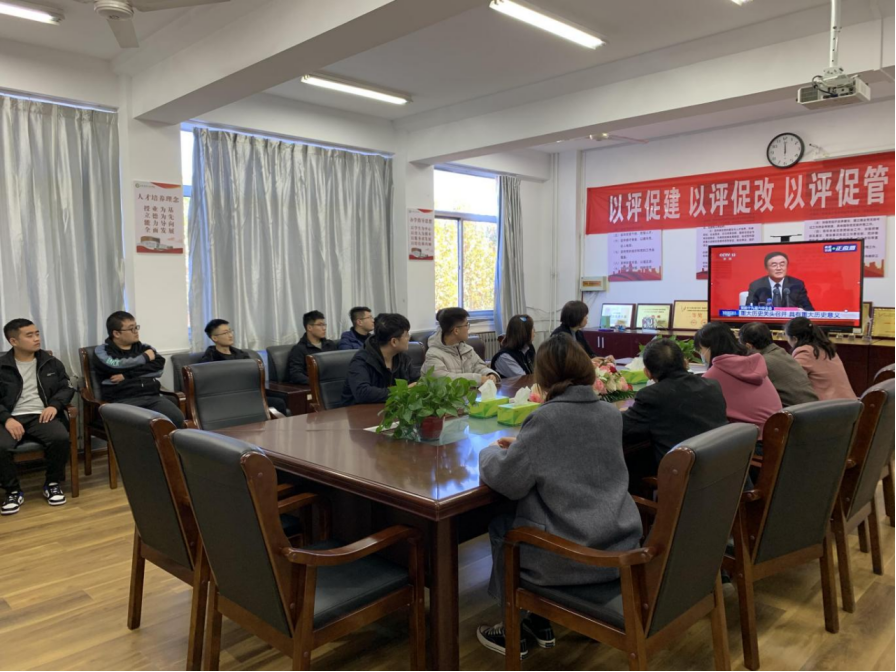 根据学校党史学习教育领导小组办公室《关于组织收听收看党的十九届六中全会新闻发布会的通知》,商学院党总支于11月12日上午10组织当天坐班的教职工、部分教师和学生,在济南校区1号教学楼410党建活动室,集体收看了中共中央将于11月12日上午10时举行新闻发布会现场直播。
