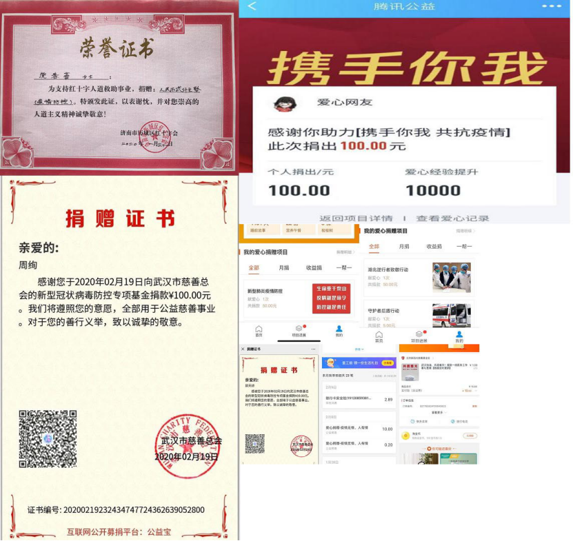 学生党支部书记党春蕾同志向红十字会捐款2000元用于疫情防控,周绚、蒋杰锐同志各捐款100元用于共抗疫情,安云燕、陈尚昊等学生党员也纷纷捐款捐物助力防疫抗疫。
