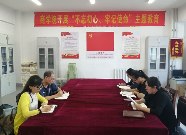 为庆祝新中国成立70周年,弘扬以爱国主义为核心的民族精神和以改革创新为核心的时代精神,激发广大党员的爱国热情,商学院教工第三党支部全体党员于2019年09月24日下午2点30分在沿街楼二楼党员活动室由支部书记张芳丽同志主持开展“不忘初心、牢记使命”主题教育。主题教育分为三个部分: