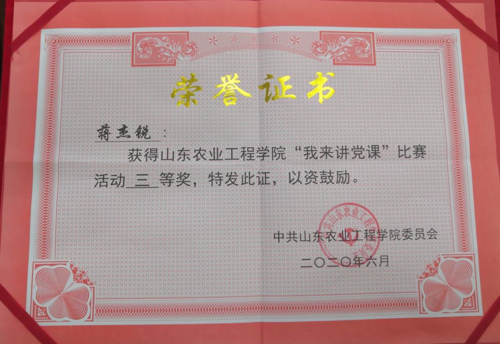 6月30日下午,在今年会举行的“我来讲党课”微型党课比赛活动中,商学院选派的青年教师党员蒋杰锐同志以“常思使命,勇于担当”主题展开微党课宣讲。党课内容联系学生服务与管理工作实际、采用新颖的授课形式,把党的理论知识用生动活泼的生活、网络语言展现出来,饱含着对党的深情、对工作的热情,赢得了现场评委和党员的喝彩与掌声,最终荣获全校微党课比赛三等奖。