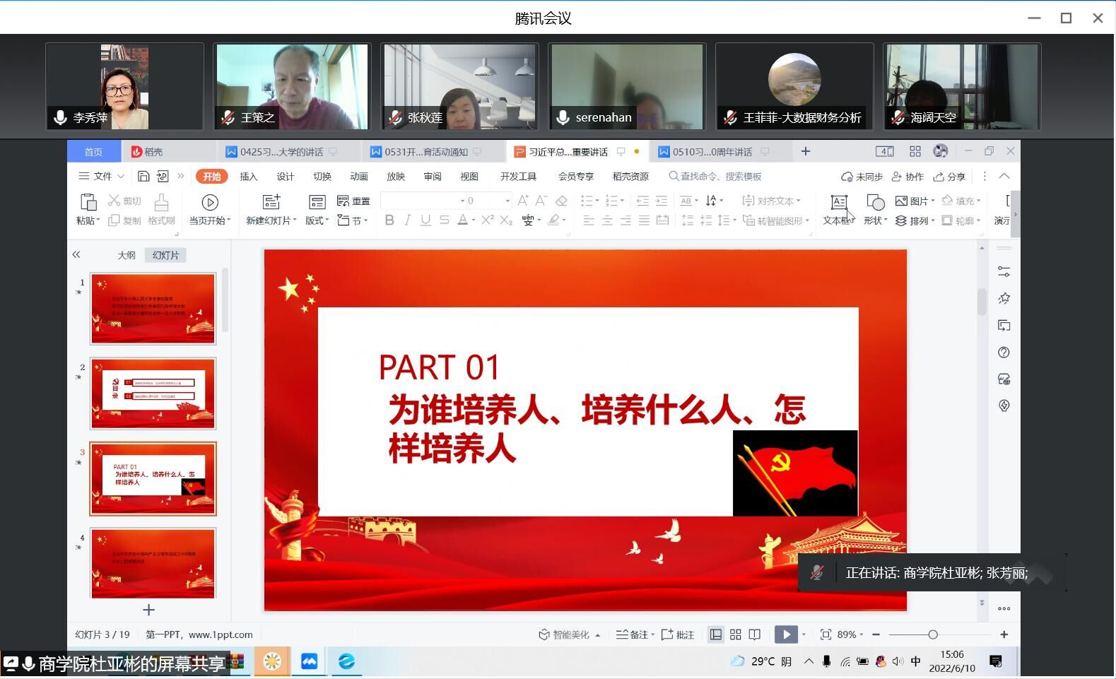6月10日下午,商学院教工第三党支部全体党员,认真学习了习近平总书记在中国人民大学考察时的重要讲话精神。