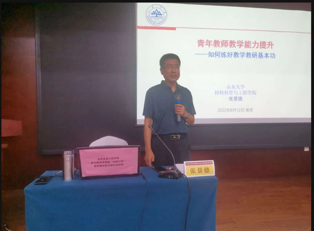 8月12日上午,山东大学张景德教授为培训班学员做了“青年教师如何练好教研科研基本功”专题讲座。
