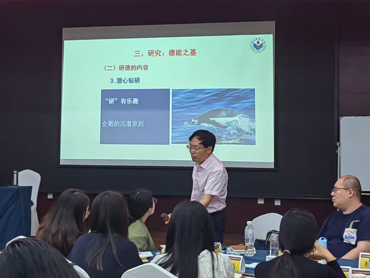 “有成为教师的能力,不代表具备教师应该拥有的能力。”任者春教授以底线伦理视角切入,详细阐述了“师德”的内涵;并教导全体青年教师要注重教学能力的培养,从“不出错的出场”开始,逐步向“出道——出彩——出神”的境界进发。然后从“信念、研究、育人、审美”四个方面剖析了青年教师应该具备的职业能力与职业素养,教导青年教师要严格遵守职业行为准则,做一名合格的大先生。
