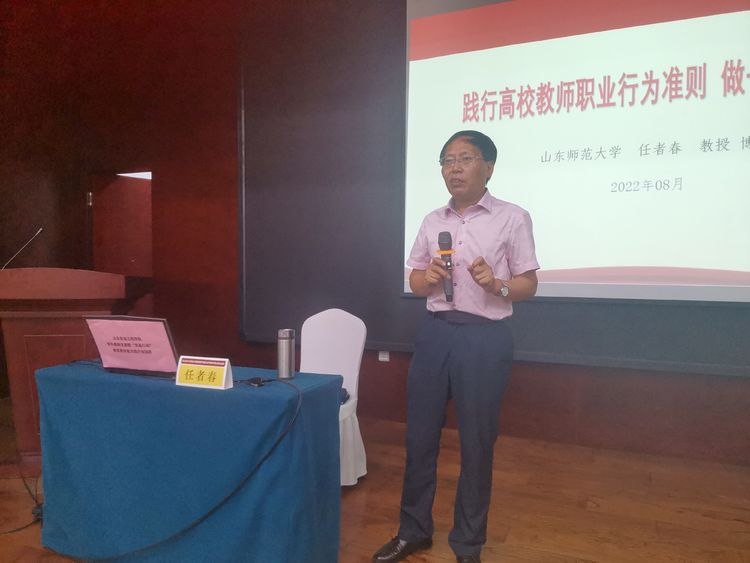 下午,来自于山东师范大学马克思主义学院的任者春教授带来一场主题为“践行高校教师职业行为准则-做一名合格大先生”的精彩讲座。