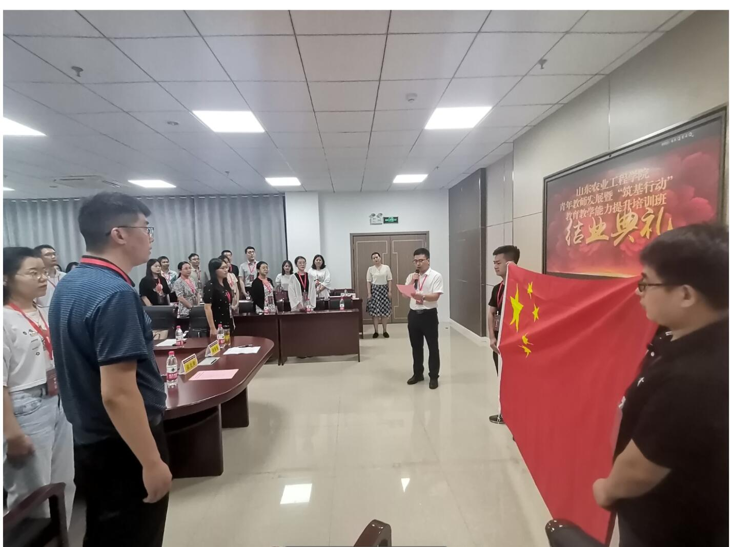 参观结束后,在图书馆四楼开展教师宣誓和结业仪式活动,5位小组代表分表就此次培训活动进行总结汇报,大家纷纷表示,感谢山东大学和校领导举办的此次教育教学能力提升培训班,通过6天的学习,收益颇丰,在今后的教学工作中将继承和发扬学校优良校风教风学风作风,教书育人,履职担当,努力为学校发展谱写新的华章。
