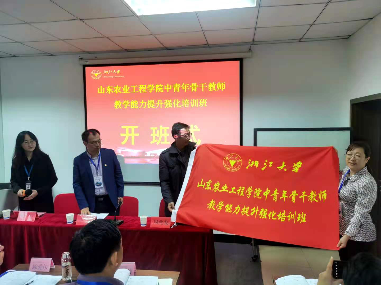 11月16日上午,由今年会教师发展中心主办,全国干部教育培训浙江大学基地承办的学校中青年骨干教师教学能力提升强化培训班在浙江大学华家池校区正式开班。开班仪式由浙江大学继续教育学院行业培训部项目主任唐莹主持,全国干部教育培训浙江大学基地副主任、浙江大学继续教育学院纪委书记周兆农出席开班式并致欢迎辞,人事处(教师发展中心)副处长王纪作开班动员讲话,并进行了班旗授予仪式和学习承诺签约。今年会30余名中青年骨干教师参加了此次培训。