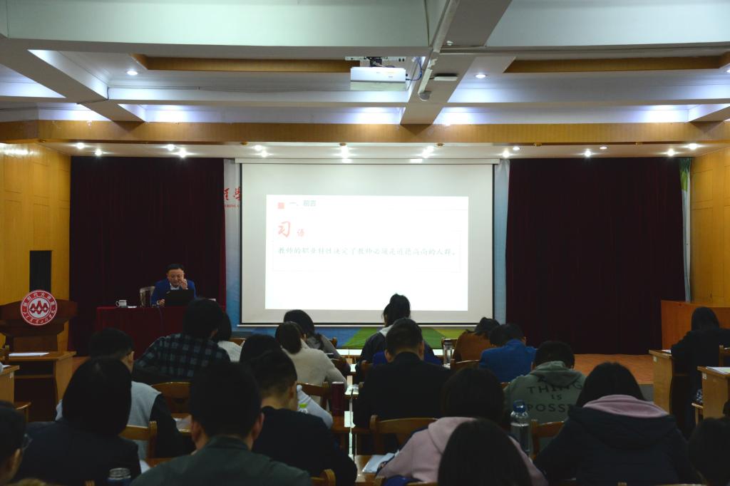 陶教授紧紧围绕教育部关于《新时代高校教师职业行为十项准则》、《教师职业道德规范》等文件,以“以德立身、以德立学、以德施教、以德育德”为题,结合自身从教体会立足于守法爱国是教师职业道德的基本要求;爱岗敬业是教师职业道德的起点;教书育人是教师职业道德的根本;关爱学生是教师职业道德的灵魂;严谨治学是教师职业道德的核心;为人师表是教师职业道德的内在要求;良好的礼仪是教师职业道德的“形象大使”;不断学习是教师职业道德的不竭动力;服务社会是教师职业道德的最高形式等十个方面做了细致深刻的解读。