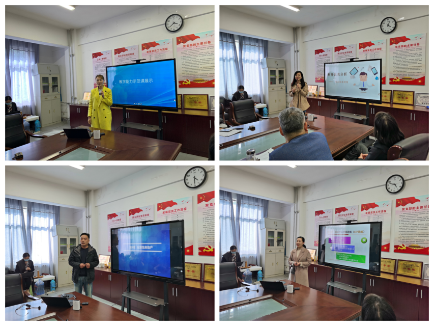 活动中,4位各个教研室推荐的优秀教师进行了课堂教学能力提升示范课的展示,王宁、王菲菲、陈杨、梁沛沛老师各具特色,声情并茂,采用启发式、探究式等教学方式,运用多种信息化手段,进行了丰富多彩的课堂教学展示,展现了商学院中青年教师锐意改革的风采,观摩的老师们反响强烈,普遍感到受益匪浅。