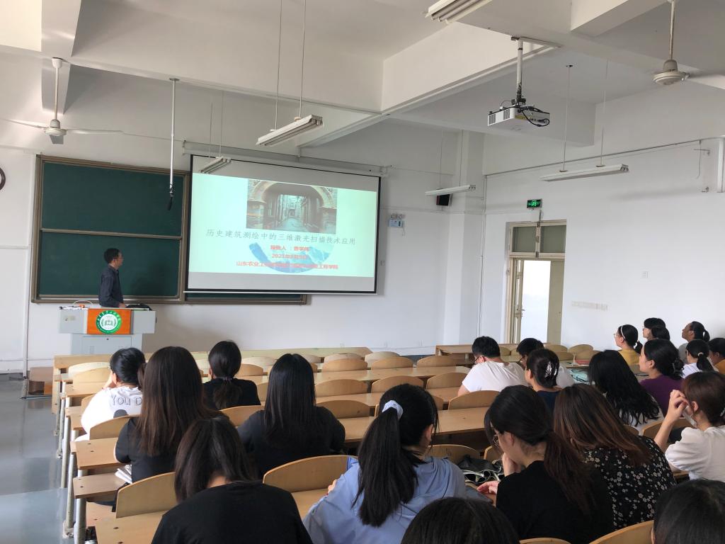 为了让学生了解最新的三维激光扫描技术,9月10日下午2点,我院大地测量学与测量工程专业博士,曹学伟副教授在济北校区2号教学楼3-2教室为我院师生进行题为“历史建筑测绘中的三维激光扫描技术应用”的学术报告,2018级遥感科学与技术专业与2018级工程造价专业的同学参与了此次报告会。