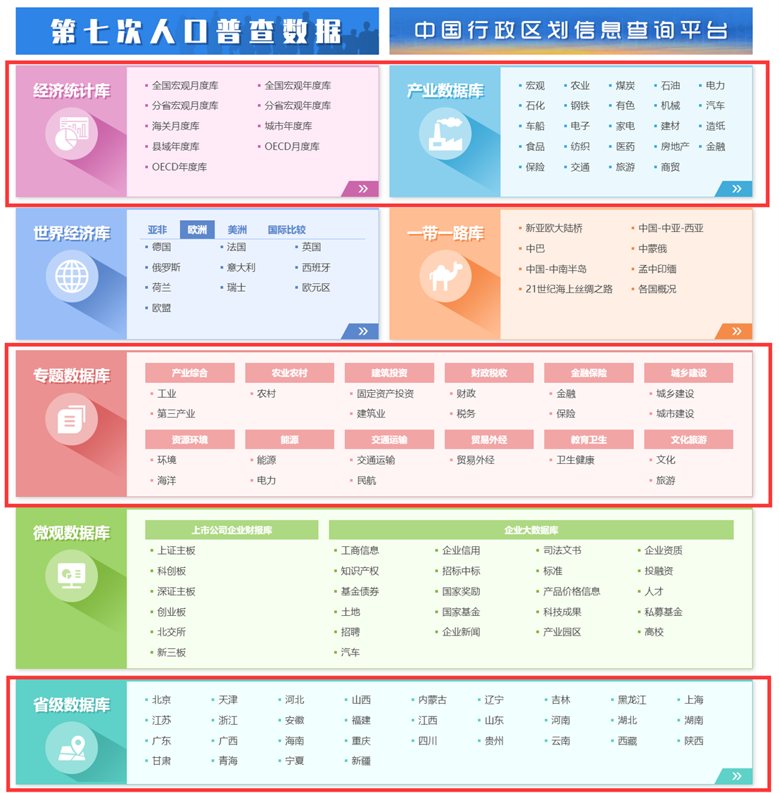 2、《中经网产业数据库》包含了宏观、农业、石油、煤炭、电力、机械、钢铁、纺织、石化、电子、汽车、医药、有色、建材、家电、食品、造纸、车船、房地产、金融、保险、商贸、交通、旅游等24个行业子库,涵盖了行业发展趋势、市场供求、对外贸易、价格、行业投资、行业绩效、能源消耗等方面的指标。行业全面,内容丰富,使得研究人员能够快速、全面、准确地掌握所关注行业的动态趋势。
