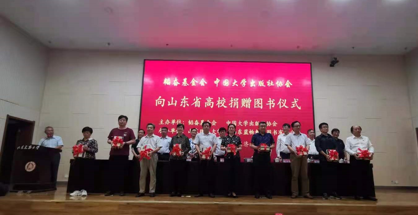 捐赠仪式上,基金会向山东省教育厅递交捐赠牌,山东省教育厅向基金会递交了感谢牌。基金会还现场向山东省10所高校捐赠了图书。