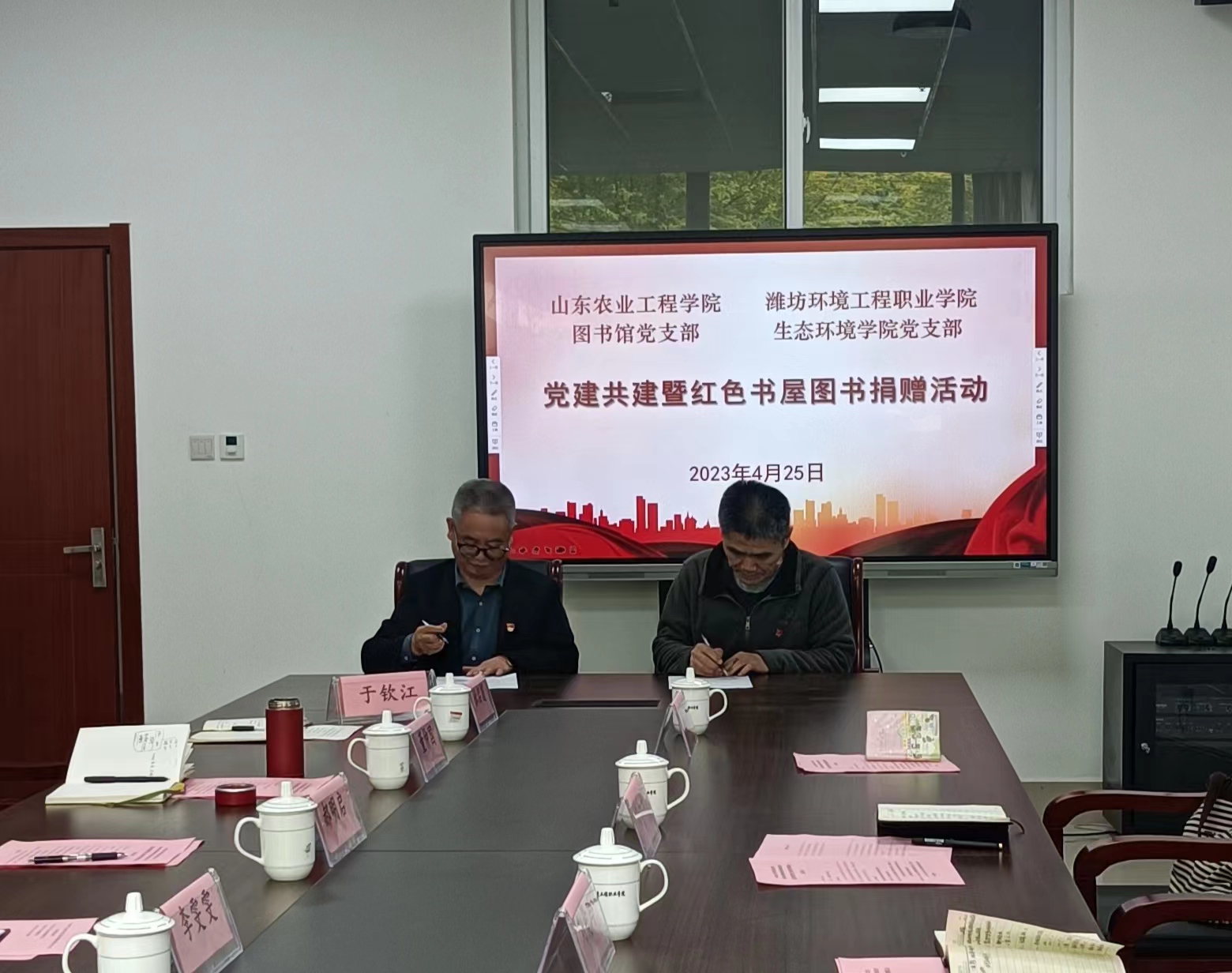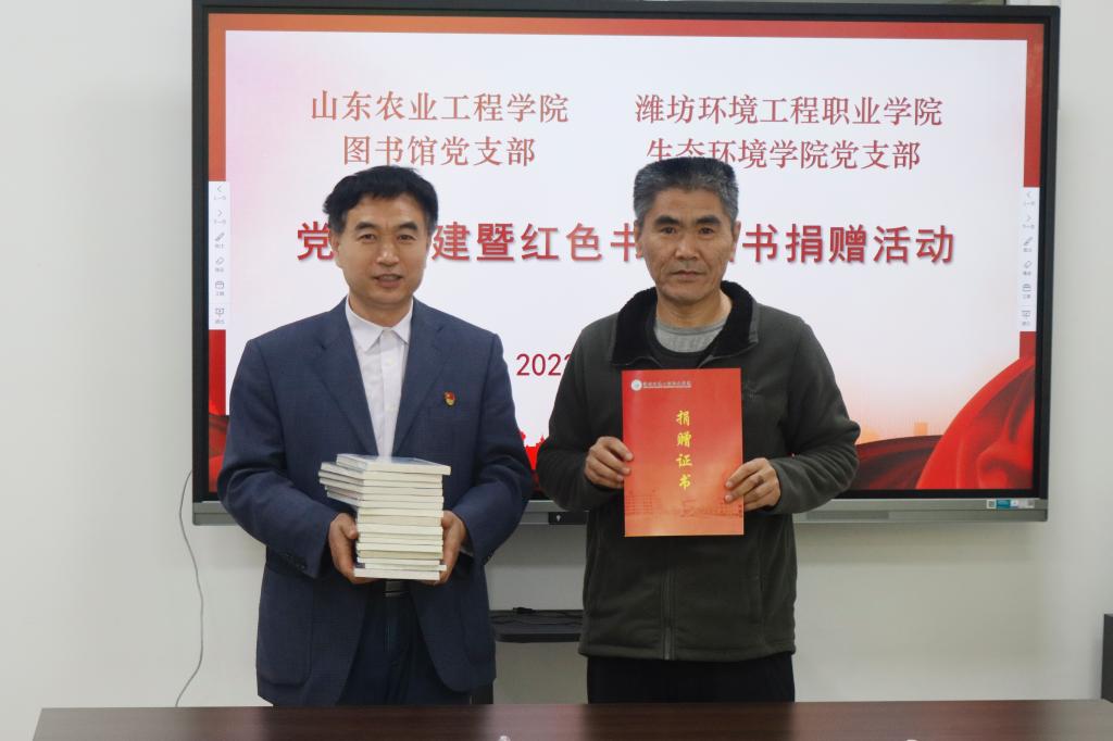 图书馆与潍坊环境工程职业学院 开展党建共建签约暨红色图书捐赠活动